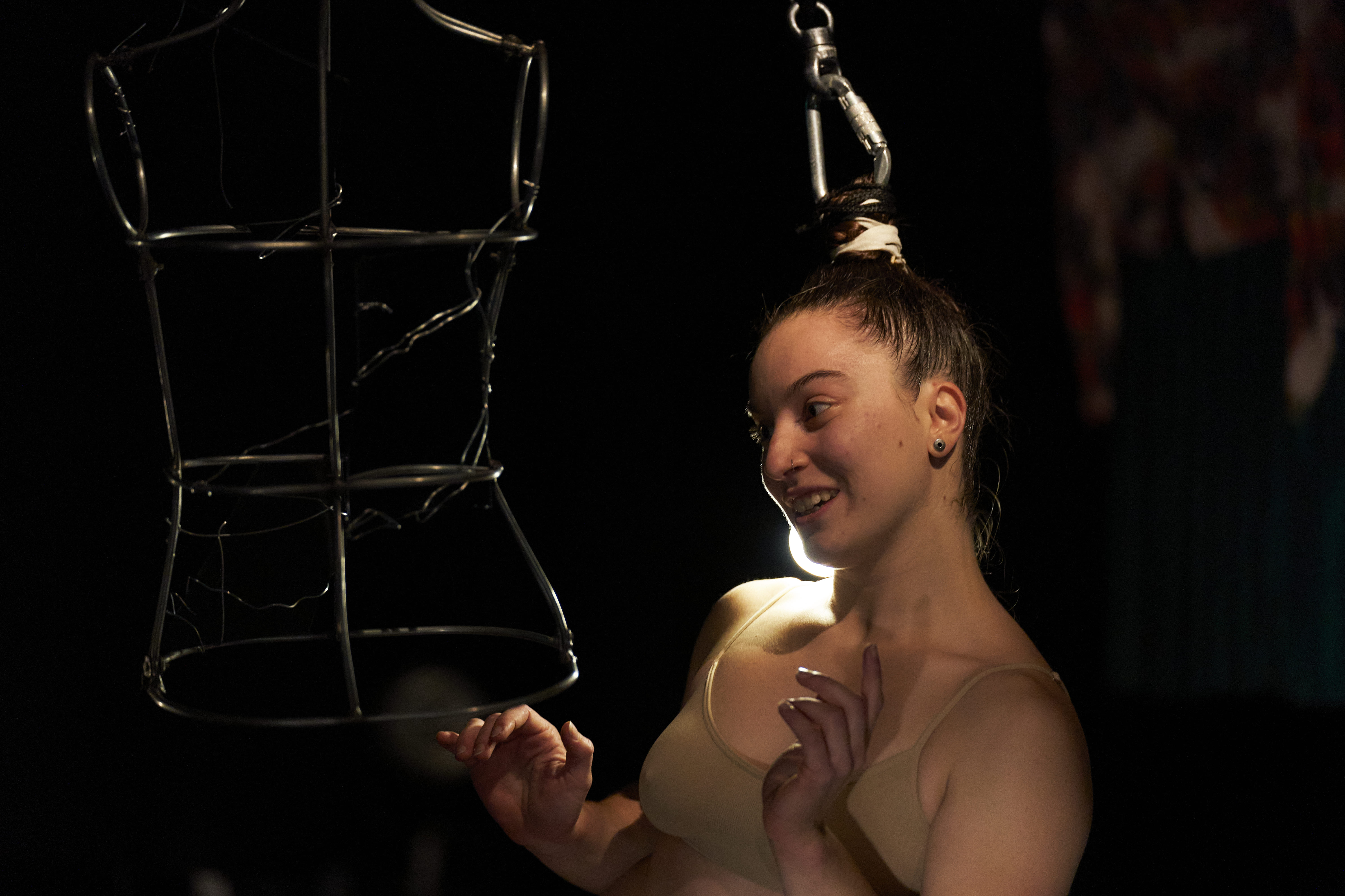 L’Io, insieme di esperienze vissute, paure provate, emozioni, traumi, attimi ricchi di sentimento, generanti creature a sé stanti: Frammenti. Lanciandosi alla loro ricerca, Cecilia inizia il suo percorso di accettazione, esplorando attraverso la trazione capillare volteggiando sulle cinghie aeree. Ed è così che illuminata da mille specchi invita il suo pubblico a rispecchiarsi nel suo viaggio.